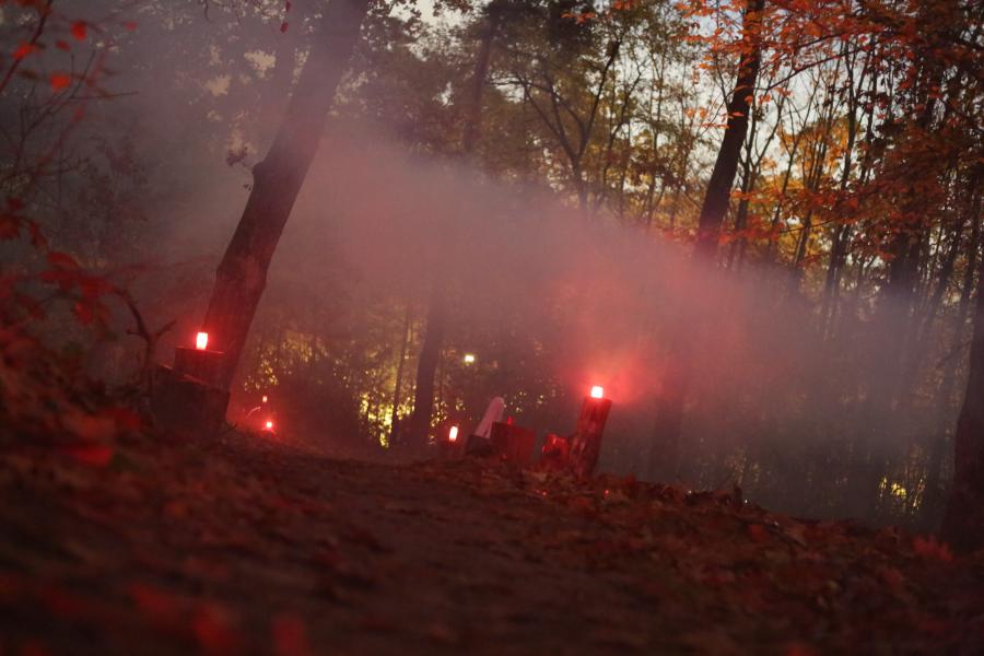 Es gab die beliebte Gruselolympiade mit Spielstationen, für die es als Belohnung bei Absolvierung aller Aktionen eine Urkunde und eine süße Überraschung gab. Warteschlangen gab es auch in diesem Jahr vor dem Gruselparcour durch den diesmal sehr nebligen Geisterwald. Beim Durchlaufen tauchten dort gruselige Gespenster auf, die durch geheimnisvolle Lichter beleuchtet wurden. Die Überraschungsschreie aus dem Wald von Groß und Klein waren nicht zu überhören. Bei den kleineren Kindern waren meist auch die Eltern dabei, so dass es immer eine Hand zum Festhalten gab.