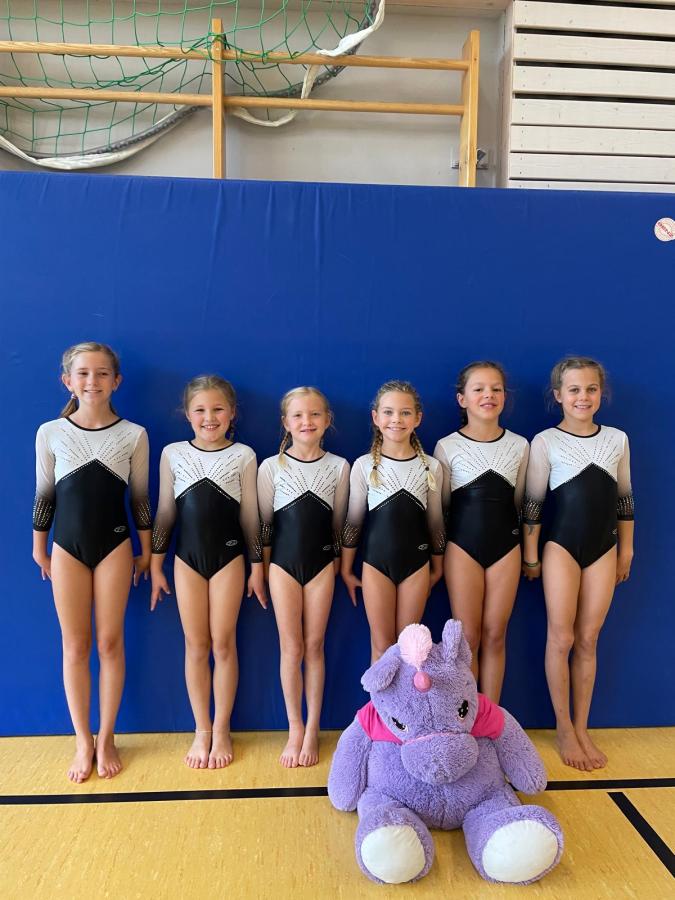 Nach einem erfolgreichen Wettkampfjahr in der Pflichtliga B (P4) muss sich unsere Mannschaft nun den schwierigeren Anforderungen der P5 stellen. Den größten Unterschied gibt es am Sprung. Wird in der P4 noch die Grätsche über den Bock gesprungen, müssen die Mädels in der P5 einen Handstand mit Landung in der Rückenlage auf dem Mattenberg zeigen, zur Vorbereitung auf den Überschlag am Tisch.