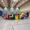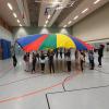Mit viel Freude und Elan schwenkten die Kinder danach den Fallschirm und versteckten sich auch darunter.